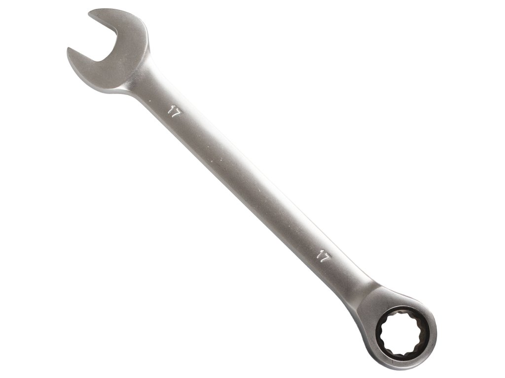 Ráčnový očkoplochý klíč o velikosti 17 mm.