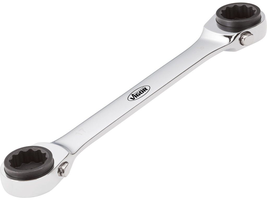 Velikosti: 10, 13, 17 a 19 mm. Délka 220 mm. Materiál CrV, přepínatelné ráčny s 72 zuby.