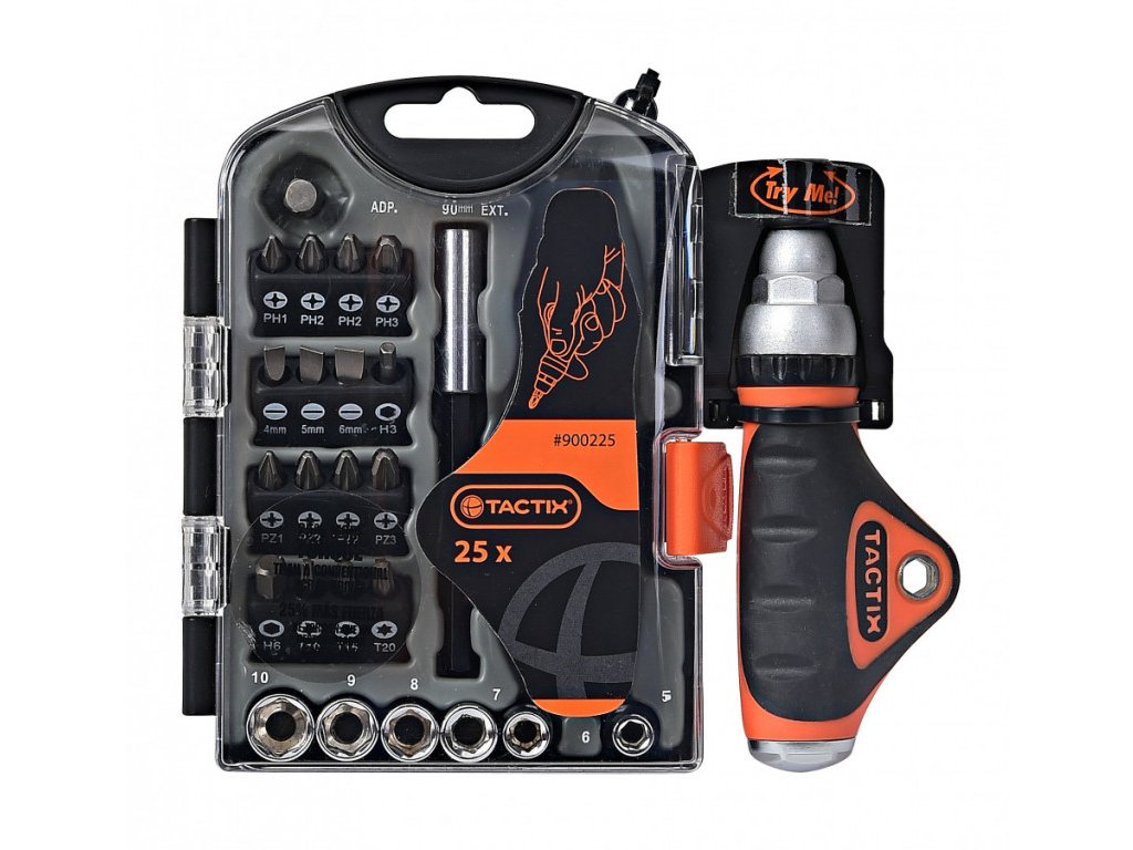 Ráčnový šroubovák s příslušenstvím 25 ks - TC900225