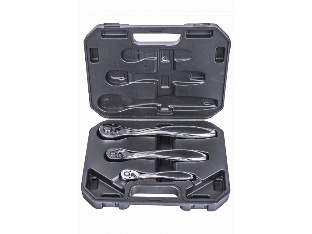 Tato 3dílná sada ráčen je určena pro práci s nástrčnými klíči v dílnách, autoservisech nebo domácím prostředí.