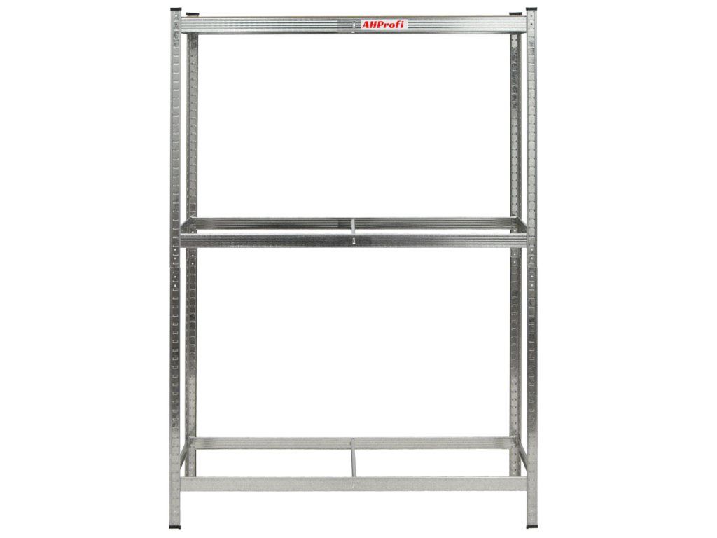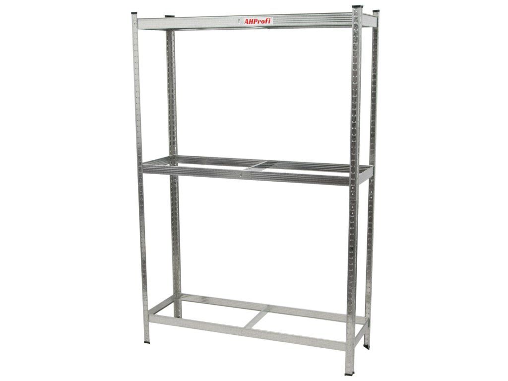 Policový regál na pneumatiky o rozměrech 1200 x 400 x 1800 mm, 3 police. Tloušťka police 4 mm, tloušťka plechu 0,5 mm.