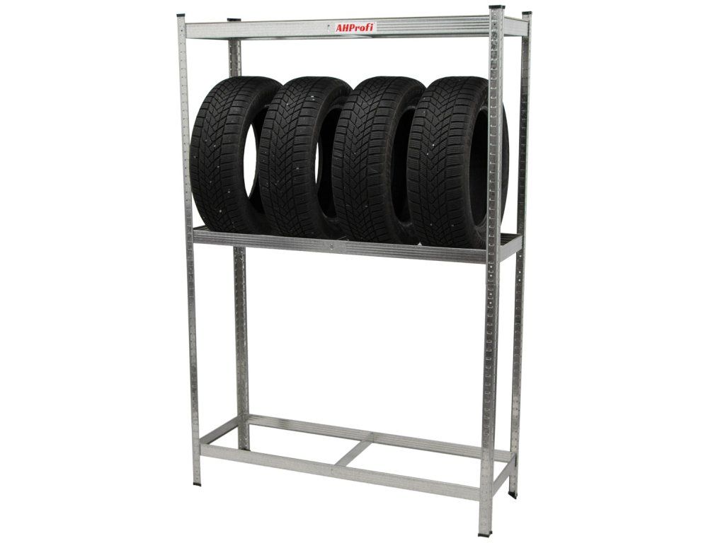 Praktický policový regál pro snadné uskladnění pneumatik osobních vozidel různých rozměrů.