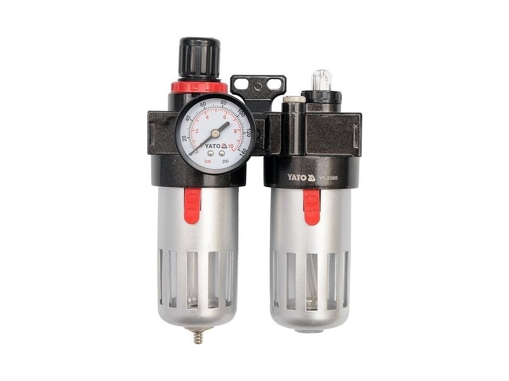 Regulátor tlaku vzduchu 1/4", max. 0,93 MPa, s filtrem (90 ml) a přimazáváním (60 ml) - YT-2385