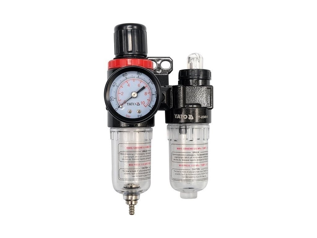 Regulátor tlaku vzduchu 1/4", max. 0,93MPa, s filtrem (25ccm) a přimazáváním (15ccm)