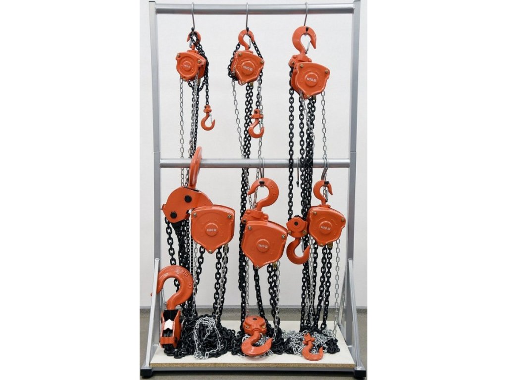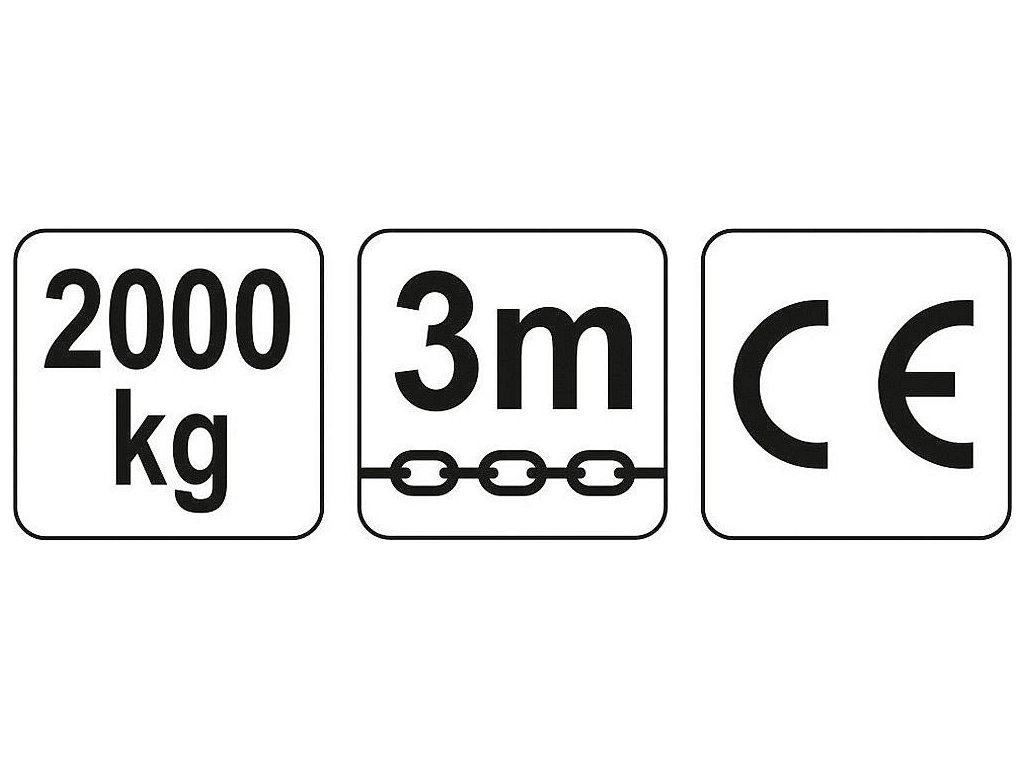 Řetěz a hák byl speciálně navržen pro výrazné zlepšení odolnosti a bezpečnosti. Ovládací řetěz má délku 2 m a výška zdvihu je 3 m. Maximální zatížení 2T.