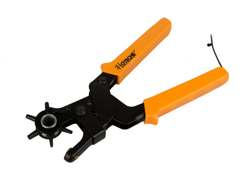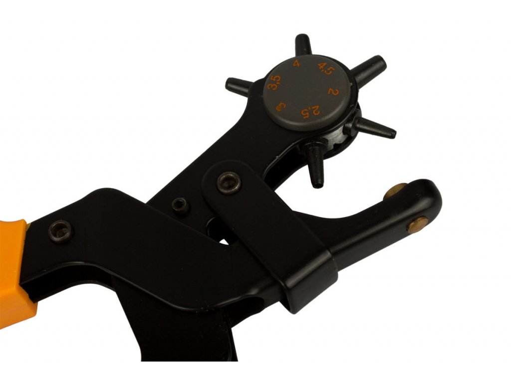 Děrovací revolverové kleště slouží k vysekávání děr v kůži, textilním a plastovém materiálu. Kleště mají 6 vyměnitelných střižníků pro vystřihování otvorů o průměru 2,0 - 4,5 mm.