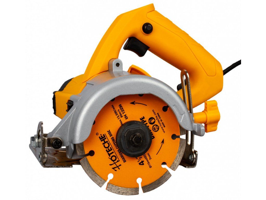 Řezačka dlaždic a obkladů značky Hoteche pro řezné kotouče s průměrem 110 mm je ideálním pomocníkem pro řezání mramoru, porcelánu, keramiky, břidlice a dalších materiálů.