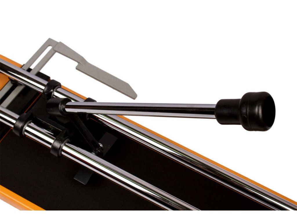 Dosedací plocha je ošetřena molitanem, který zabraňuje posunu dlaždice při řezání a zabraňuje tak možnému poškrabání, nebo nepřesnému provedení řezu. Dvojitá ocelová kolejnice je zárukou stability pro provedení přesného a rovného řezu. Posuv řezné hlavy je zajištěn čtyřmi kluznými plastovými ložisky. Práci Vám usnadní i zabudované plastové měřítko.