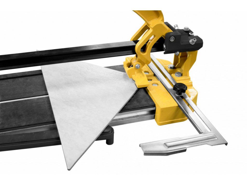 Ruční řezačka na obklady, max. délka řezu 800 mm, max. rozměry dlaždic 800 x 800 mm, max. tloušťka dlaždic 14 mm. Tvrzené řezací kolečko Ø 22 mm, 30 cm boční opěrky. Rozměr 1054 x 860 mm.