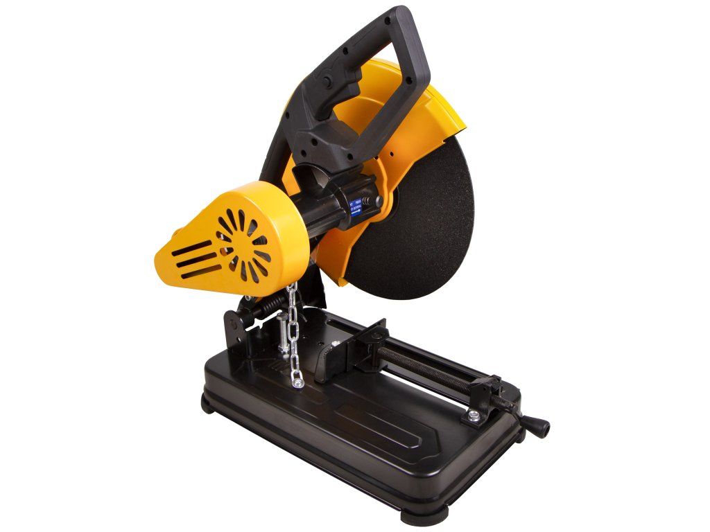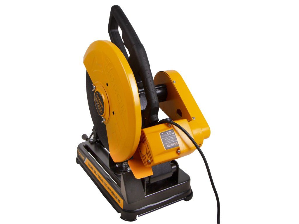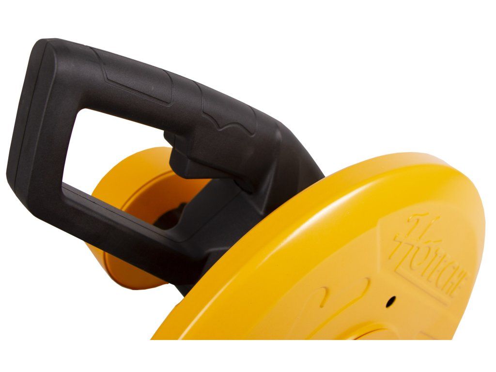 Přenosná rozbrušovací pila od značky Hoteche pro dělení kovových materiálů s možností řezání pod úhlem.