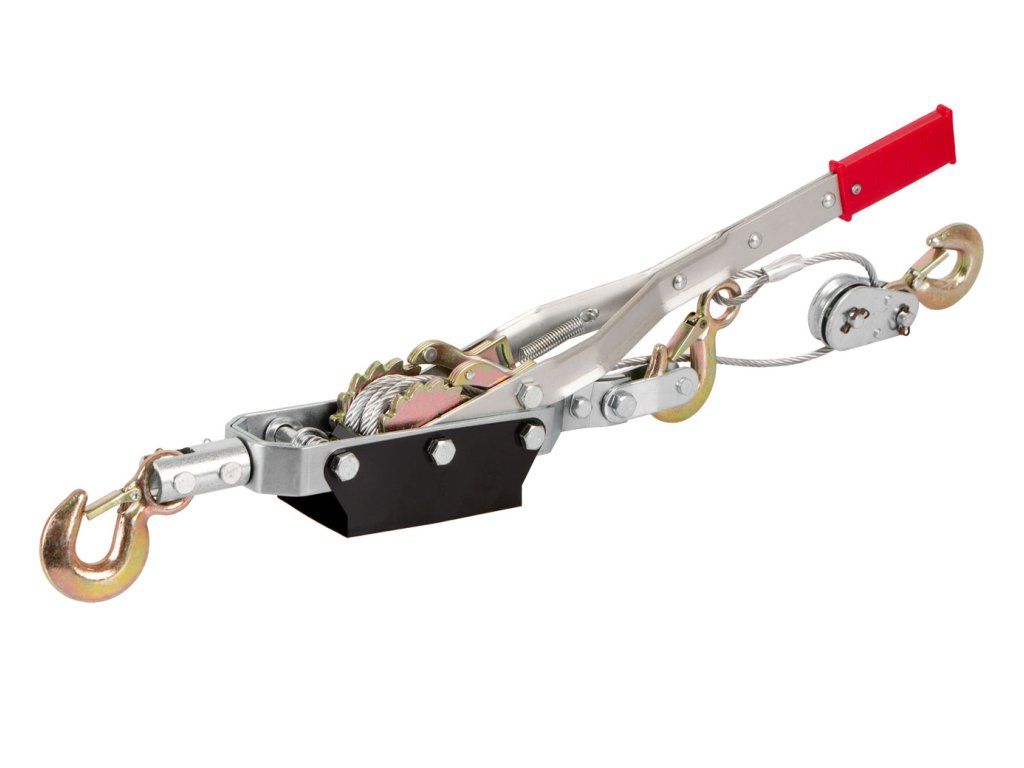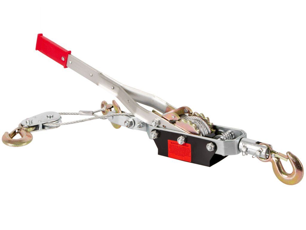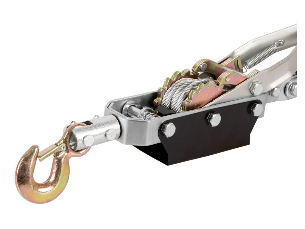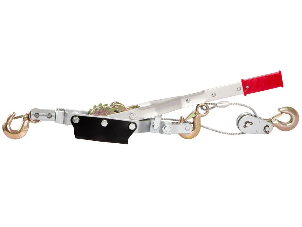 Pákový lanový naviják, nosnost 4 t, délka lana 3 m, průměr lana 6 mm, 3 háky, dvojité ozubené kolo.