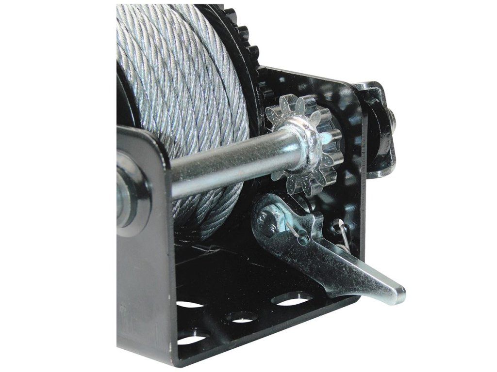 Ruční lanový naviják, určený k přitahování břemen (→ maximální zatížení v tahu: 360 kg).