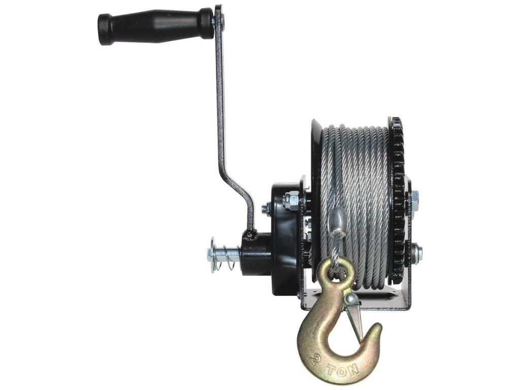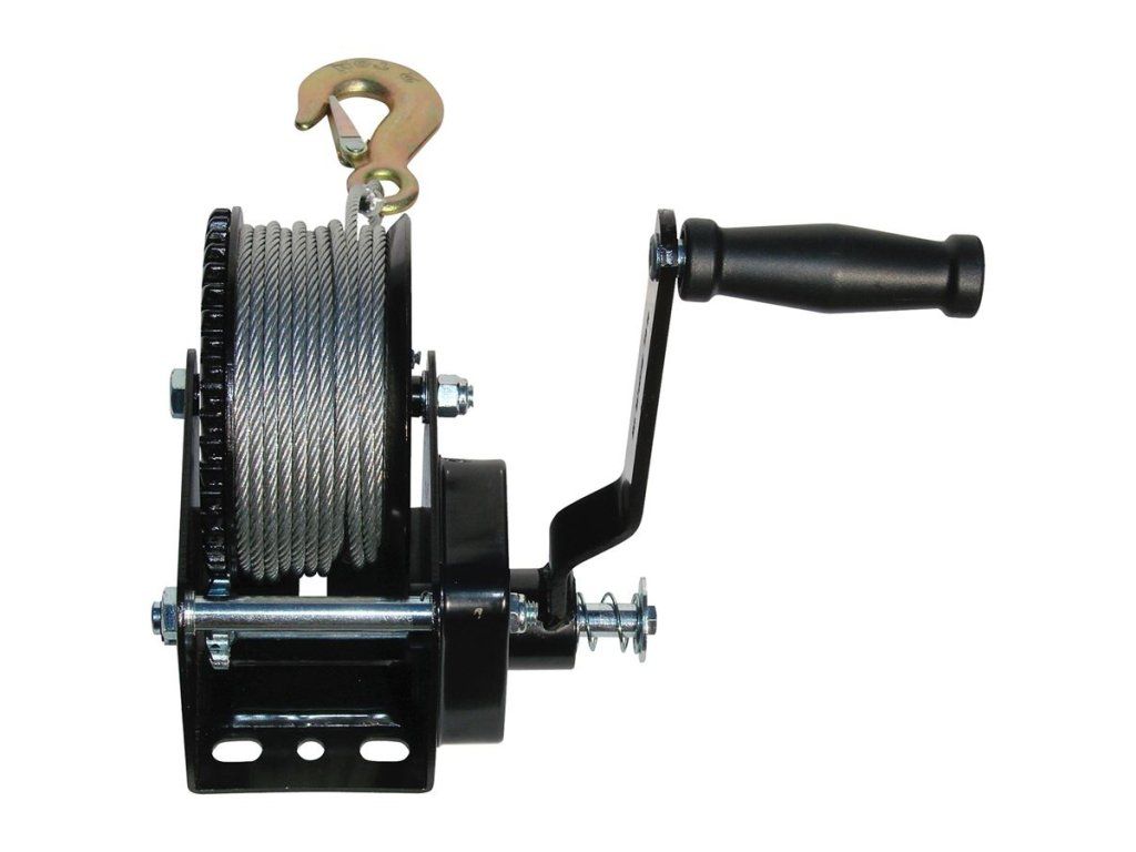 Ruční lanový naviják s integrovanou brzdou, určený k přitahování břemen (→ maximální zatížení v tahu: 720 kg).