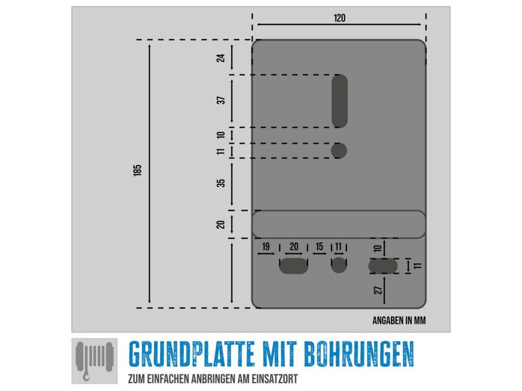 Konstrukce: ergonomicky tvarovaná klika, ocelový rám s otvory pro připevnění ke stabilnímu podkladu.