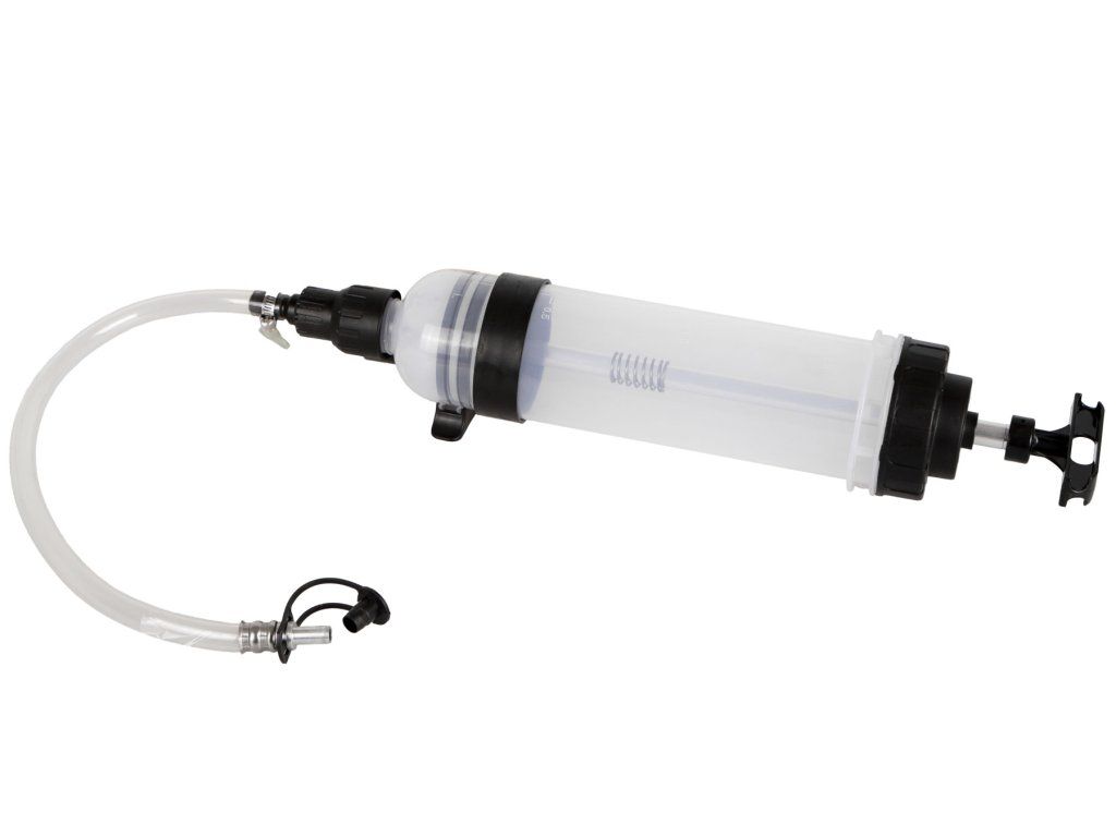 - Ruční plnička a odsávačka provozních kapalin typu injekční stříkačka s obsahem zásobníku 1,5 l.