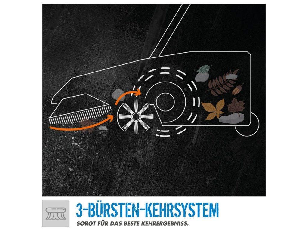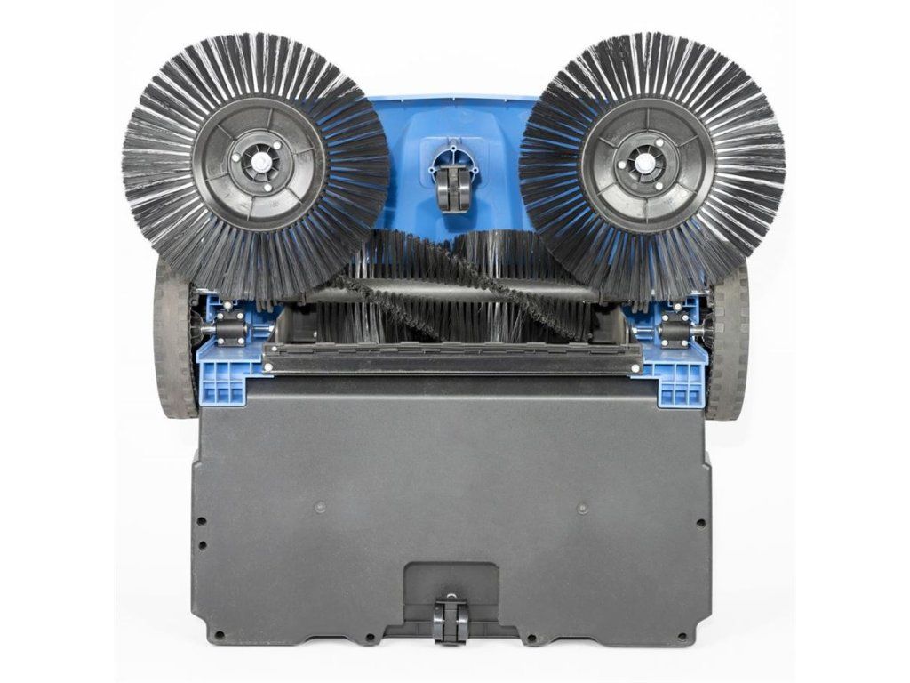 Boční (podávací) kartáče a centrální kartáčový válec, umožňují jak důkladné metení podél stěn a v rozích, tak zrychlené uklízení větších ploch bez námahy.