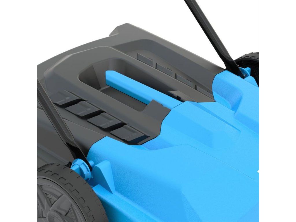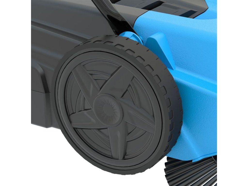 Konstrukce: plášť z tvrzeného plastu, řemenový pohon kartáčů, ergonomicky tvarovaná (skládací) řídítka, velká pojezdová kola.