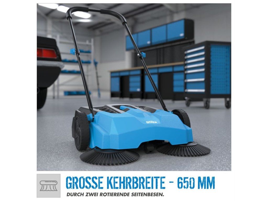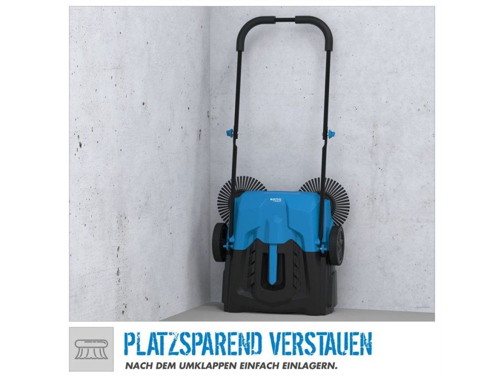 Zametací stroj s pracovní šířkou 650 mm, plošný výkon 2000 m2, sběrná nádoba 22 l. Manuální posuv stroje. Celkový rozměr 1000 x 650 x 1000 mm.