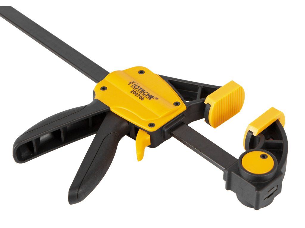 Rychloupínací truhlářská svěrka od značky Hoteche vhodná k upevnění, sevření různých materiálů.