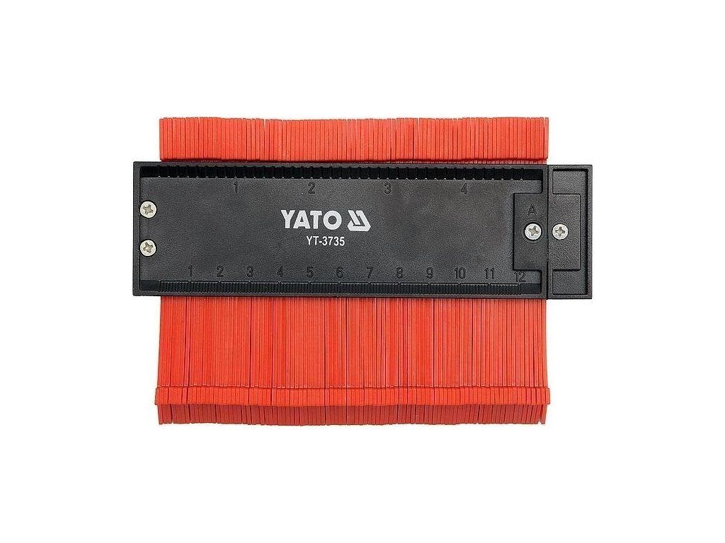 Plastová obrysová šablona šíře 125 mm pro přenášení tvarů profilů předmětů. Praktická pomůcka například pro karosáře. Přiložením lamel šablony k předmětu břity lamel okopírují obrys, který je možno přenést jinam.