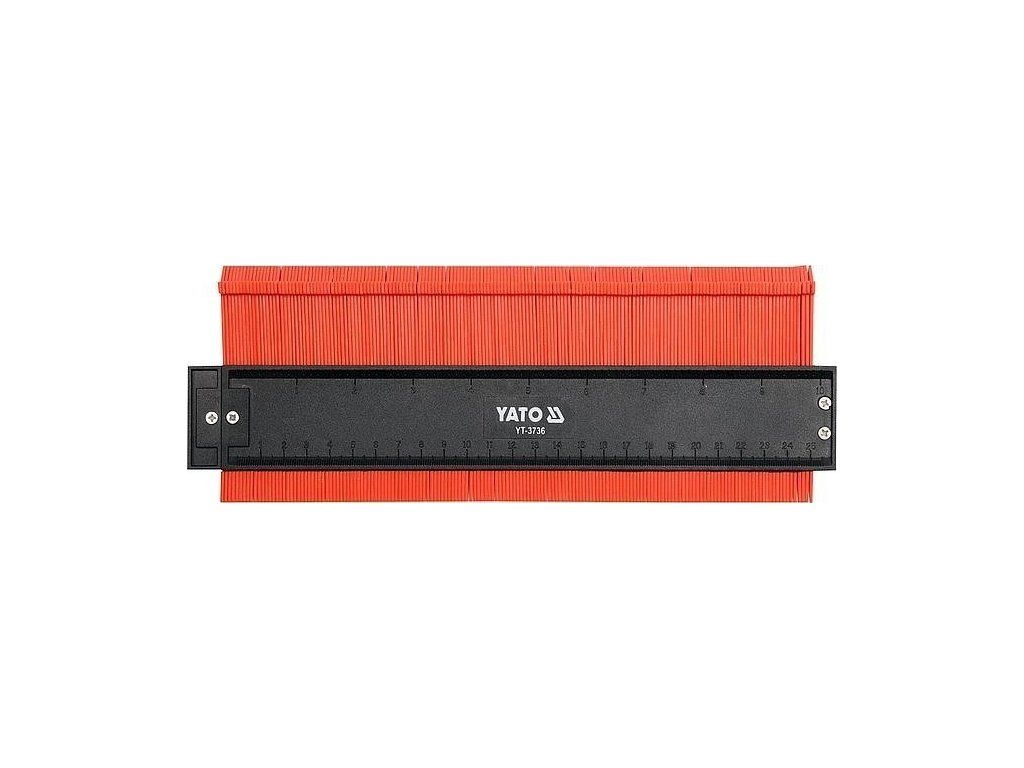 Plastová obrysová šablona šíře 260 mm pro přenášení tvarů profilů předmětů. Praktická pomůcka například pro karosáře. Přiložením lamel šablony k předmětu břity lamel okopírují obrys, který je možno přenést jinam.