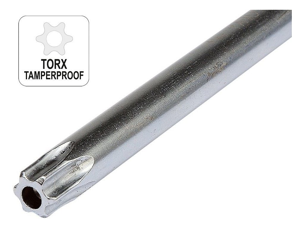Sada klíčů v provedení T šroubovák, osazený 2x torx (hvězdička) klíčem s otvorem (1x dlouhý, 1x krátký) a ergonomickou rukojetí, díky které je jeho použití opravdu snadné. Vyrobeno z oceli S2, která zaručuje dlouhou životnost.