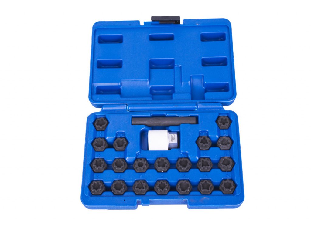 Sada 22 ks klíčů na kola VAG s bezpečnostním profilem je základem pro sejmutí šroubů a kola bez jeho poškození.