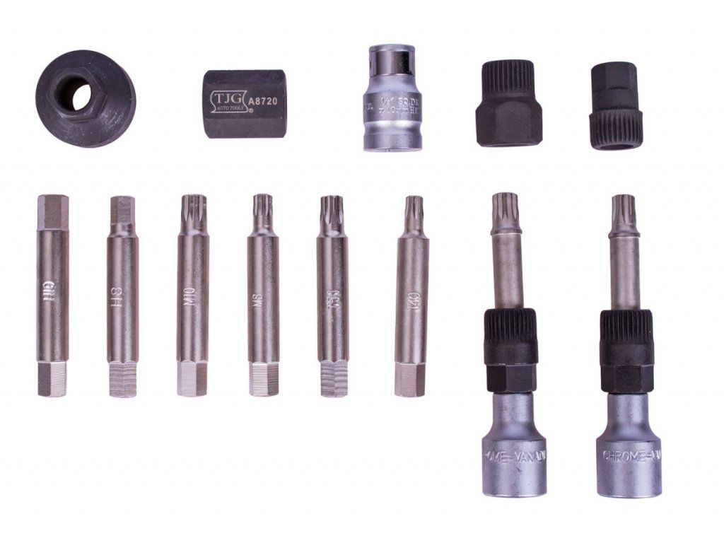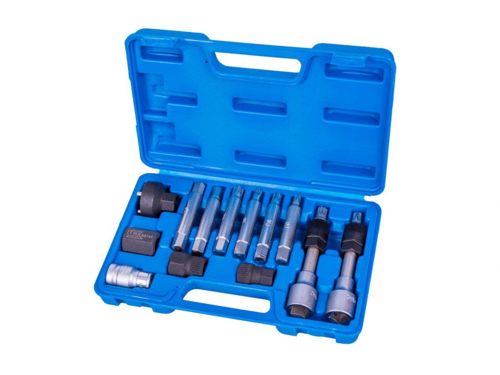 Sada adaptérů pro demontáž řemenice alternátoru, pro alternátory Bosch, Valeo, VW, Audi, Seat, Mercedes, Renault, BMW a Ford.