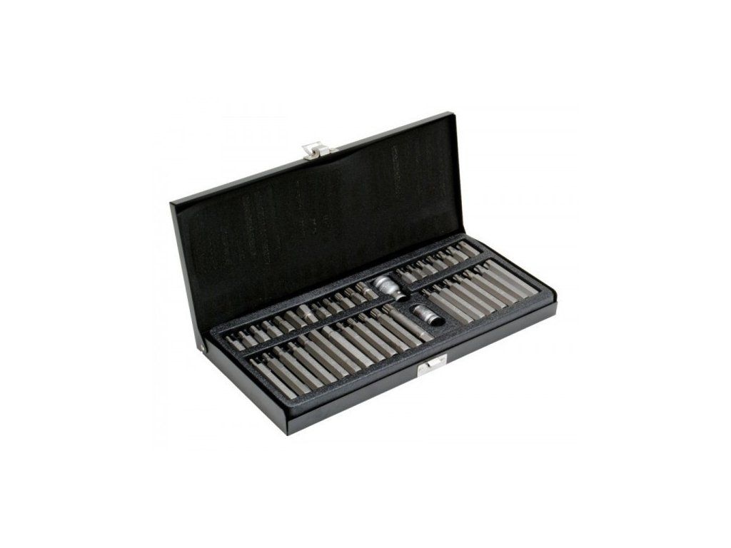 Profesionální obsáhlá sada 38 nejpoužívanějších bitů a 2 adaptérů pro uchycení bitů do ráčny 1/2" a 3/8" od výrobce kvalitního profesionálního nářadí Yato. Bity a adaptéry jsou uložené v černém plechovém boxu s kováním, který je vyplněn plastovým výliskem a pěnovou vložkou. Nářadí je tak bezpečně a přehledně uloženo a připraveno k okamžitému použití.