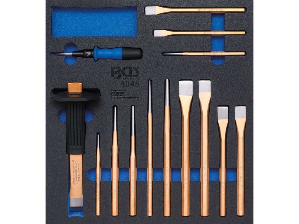 Sada důlčíků, sekáčů a vytloukačů závlaček ve výplni, 14 ks - BGS 4045