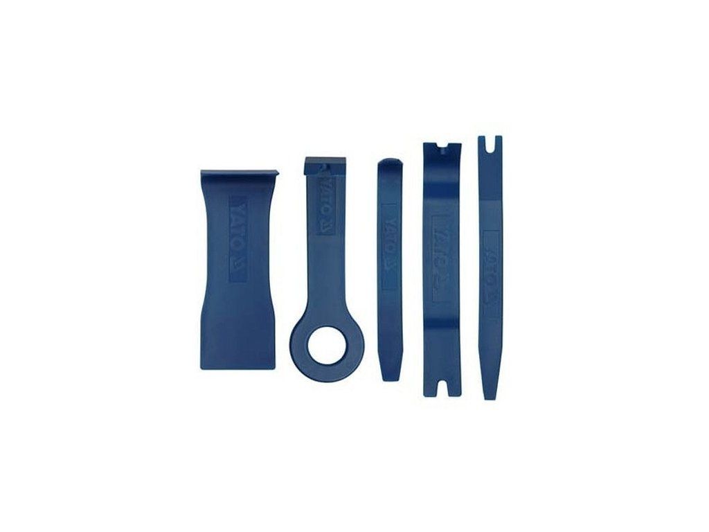 Sada obsahuje 5 nástrojů se speciálním profilem na demontáž vnitřních a vnějších příchytek plastových a čalouněných částí automobilů zajišťují bezpečnou práci a velkou úsporu času. Materiál v kombinaci s profilem nástrojů je navržený tak, aby nedošlo k poškození laku vozu, čalounění a pochromování. Pro dlouhou životnost jsou přípravky sady na demontáž čalounění vyrobeny z pružného plastu.
