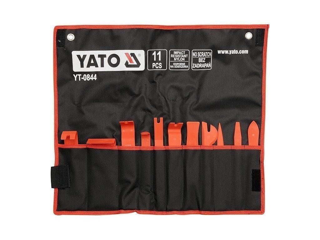 Sada obsahuje 11 nástrojů se speciálním profilem na demontáž vnitřních a vnějších příchytek plastových a čalouněných částí automobilů zajišťují bezpečnou práci a velkou úsporu času. Materiál v kombinaci s profilem nástrojů je navržený tak, aby nedošlo k poškození laku vozu, čalounění a pochromování. Pro dlouhou životnost jsou přípravky sady na demontáž čalounění vyrobeny z pružného plastu s nylonovým vláknem, které je silnější a odolnější, než ABS plast.