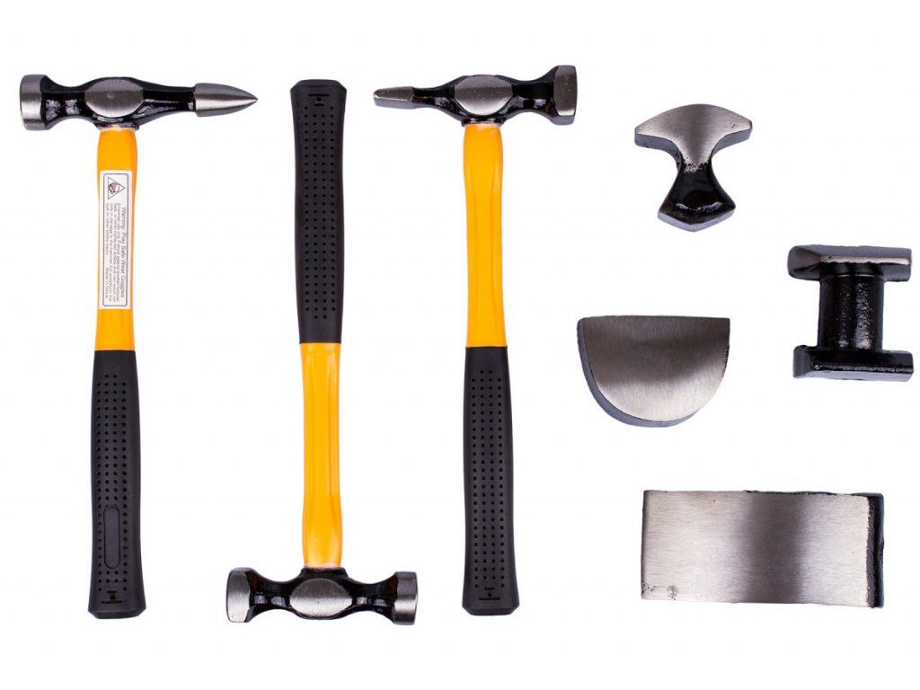 Sada 7 kusů klempířského nářadí je určená pro opravu karosérií automobilů a úpravu ploch plechu. Proto je vhodná zejména pro autokarosáře a slouží pro precizní vyrovnávání a zarovnávání plechů.