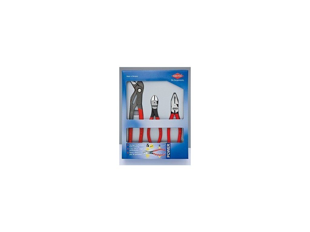 Sada kvalitních silových kleští Knipex, obsahuje 3 kusy kleští - kombinační, boční štípací a SIKO kleště.