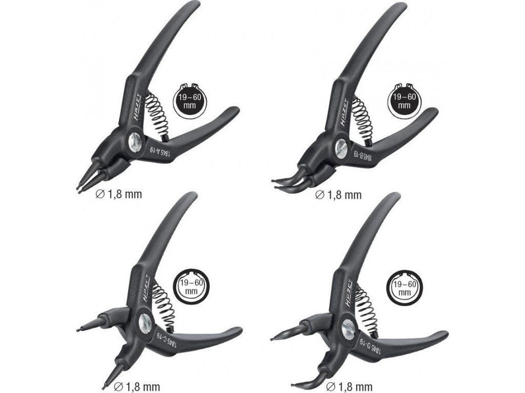 Sada kvaltiních kleští na pojistné kroužky HAZET, 4 kusy.