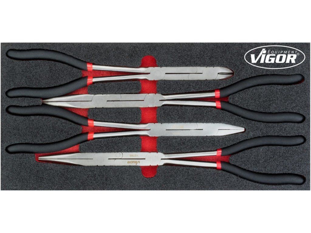 Pěnová vložka o rozměrech (š x h x v) 188 x 393 x 35 mm obsahuje celkem 4 ks profesionálních kleští s dvojitým kloubem.