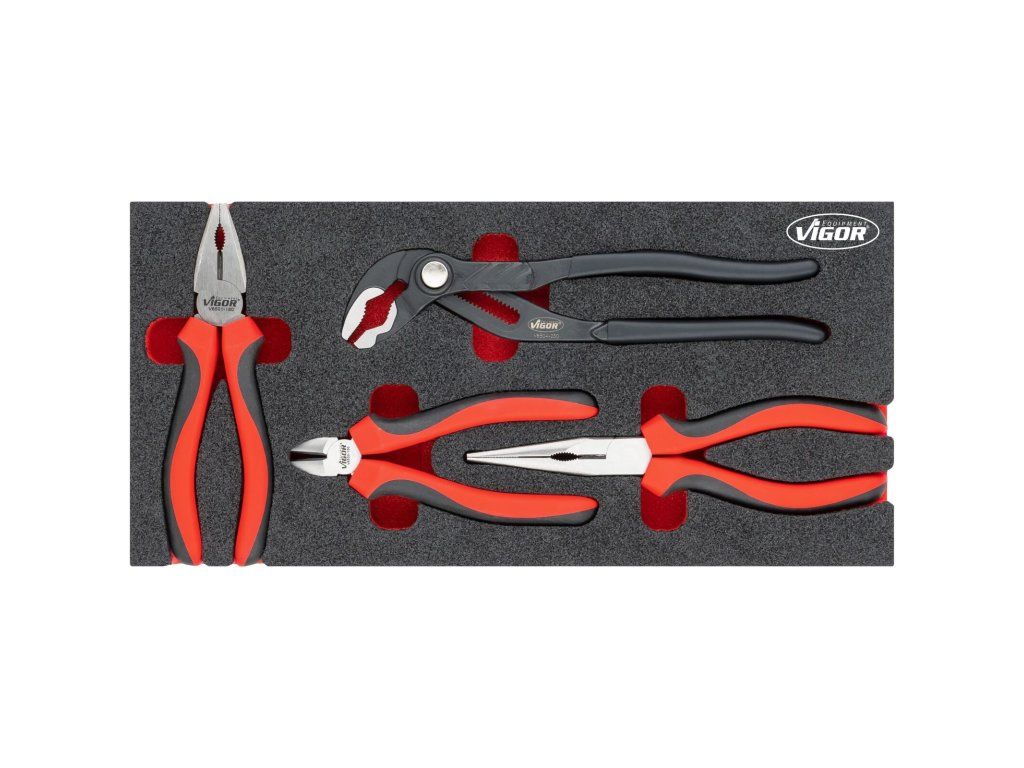 Pěnová vložka o rozměrech (š x h x v) 188 x 393 x 35 mm obsahuje 4 ks profesionálních kleští.