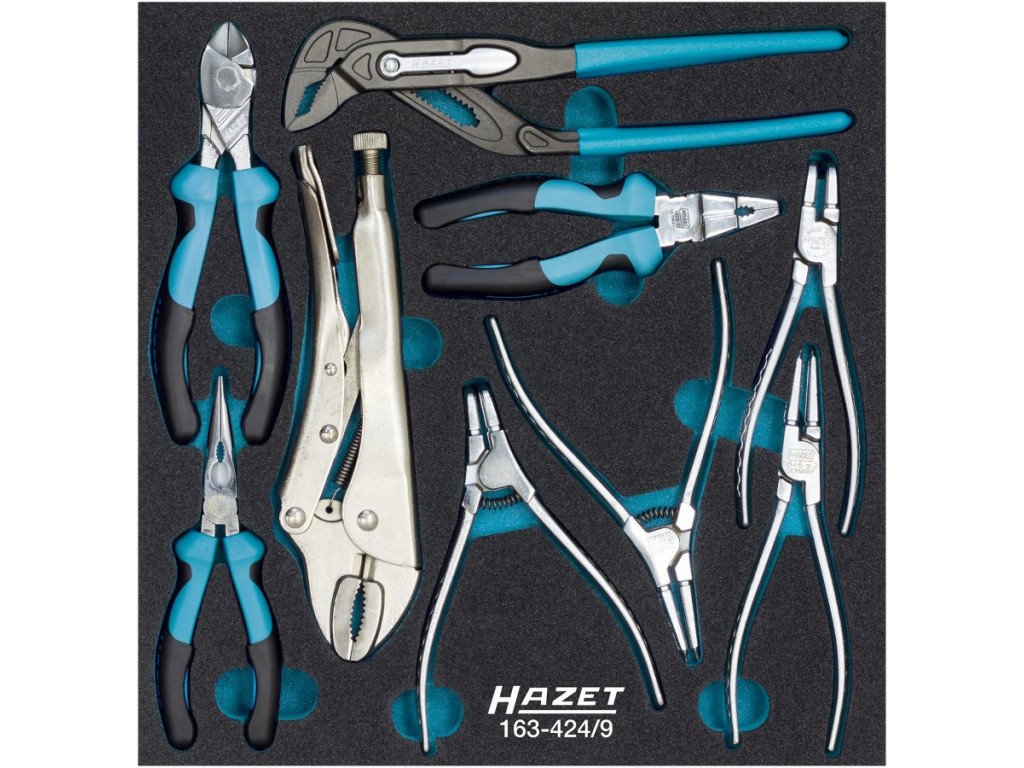 Sada kleští ve výplni do dílenského vozíku 163-424/9 od německého výrobce Hazet.
