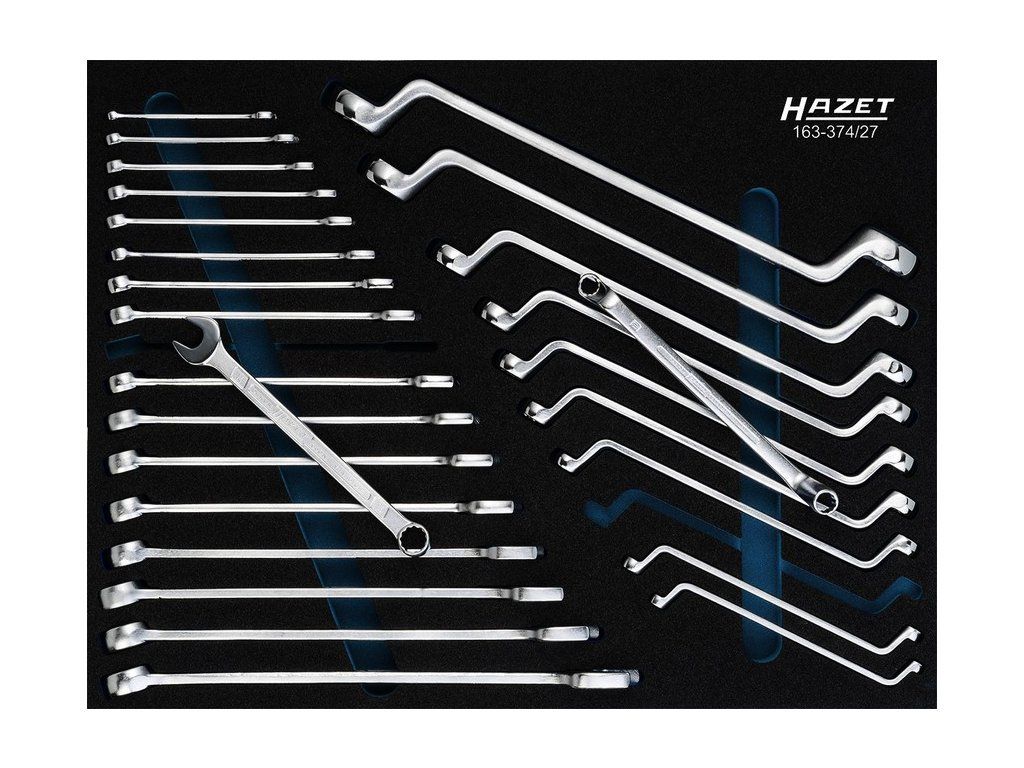 Sada klíčů HAZET, německá kvalita, celkem 27 kusů v pěnové vložce, vhodná pro dílenské vozíky HAZET, obsahuje očkoploché a očkové klíče.