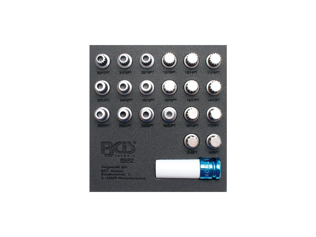 21 ks, pro BMW, prodloužený nástrčný klíč 17mm, v pěnové výplni.