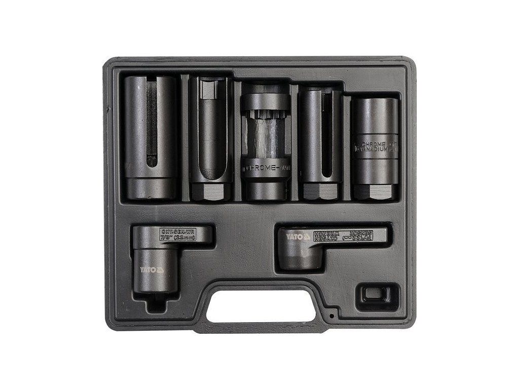 Sada speciálních montážních klíčů ma lambda sondy a vstřikovačů dieselových motorů automobilů, sada 7 kusů yato. Vyrobeno z kvalitní chrom molybdenové slitiny oceli Cr-Mo SCM-440.