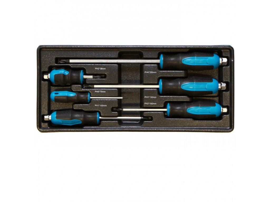 Sada křížových úderových šroubováků ve vložce do dílenského vozíku, 6 dílů - VV006UK01