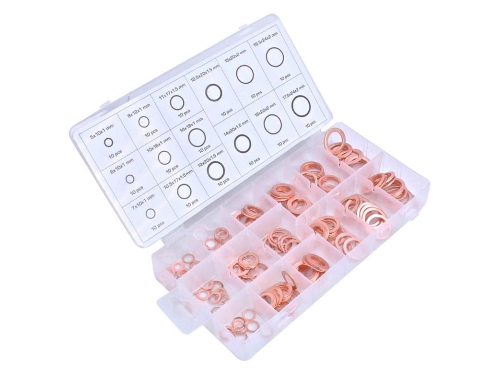Měděné podložky, 150 ks, velikosti 5x10 - 17,5x24 mm.