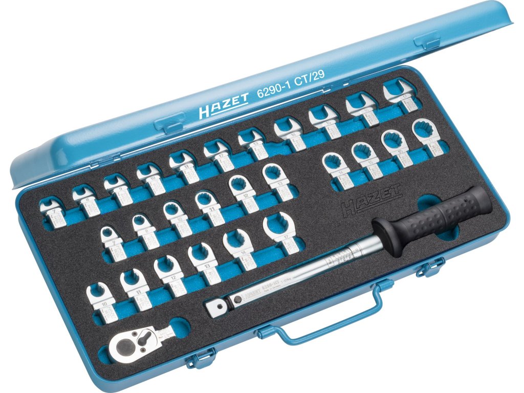 Profesionální sada momentového klíče a nástrčných hlavic od německé značky Hazet s pracovním rozsahem 5 - 60 Nm a přesností +- 2%.