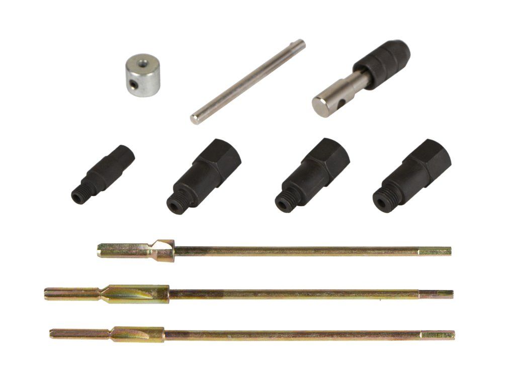 Sada přípravků/výstružníků a vodicích pouzder na sedla žhavicích svíček.