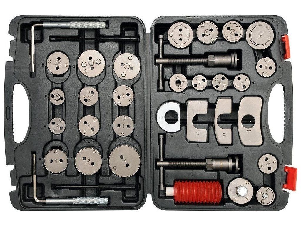 Sada pro zatlačení pístků brzd při výměně brzdového obložení. Levý a pravý závit a celkový počet 35 dílů v sadě zaručí, že je sada použitelná prakticky na každý vůz.