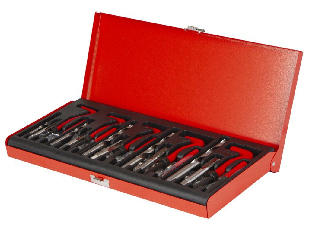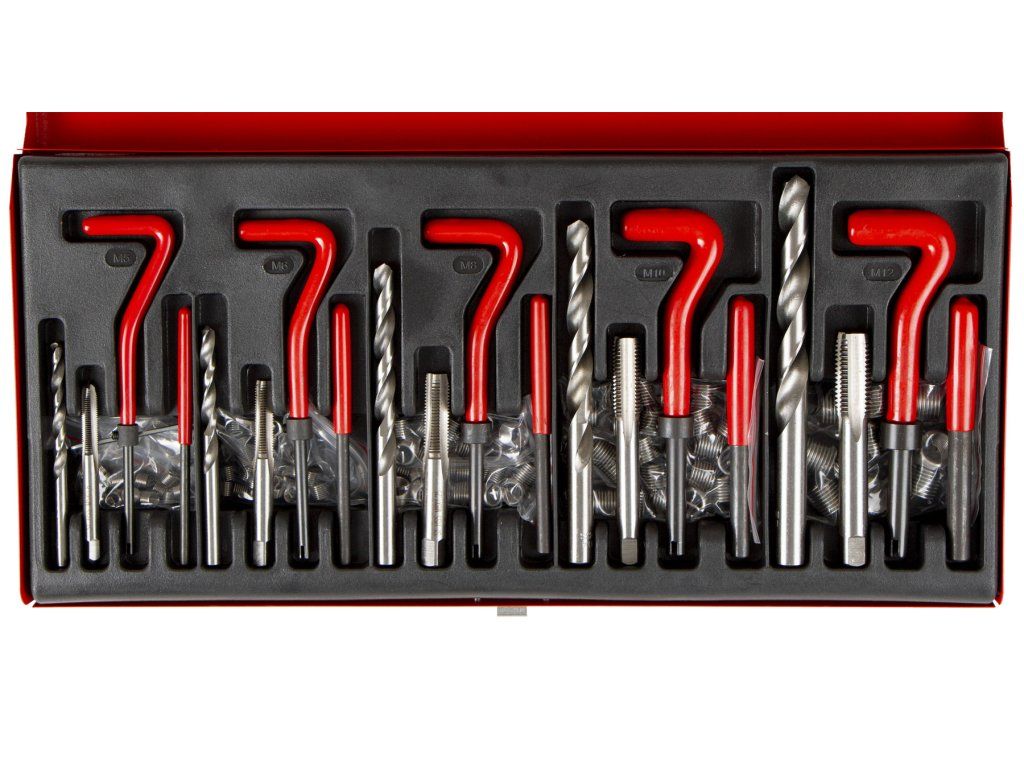 Obsahem sady pro každý druh závitu je vrták, závitník, zavádeč, vyrážecí trn a závitové vložky z nerezové oceli. Vložky M5 – M10 jsou v balení 25 kusů, vložky M12 v balení 10 kusů. Dříve pod objednacím číslem - AH201P31A.