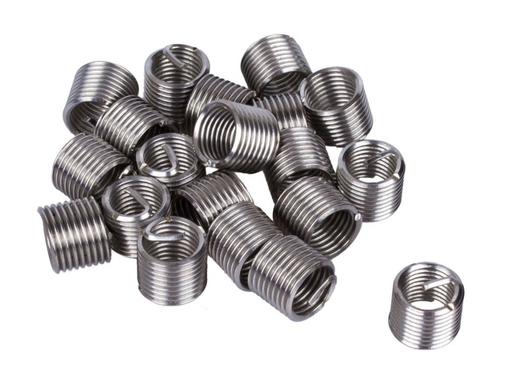Sada na opravu závitů M9x1.25. Obsahuje vrták HSS, šroubový čep, rozrážecí a instalační přípravek, klíč imbus a 20 vložek závitu.