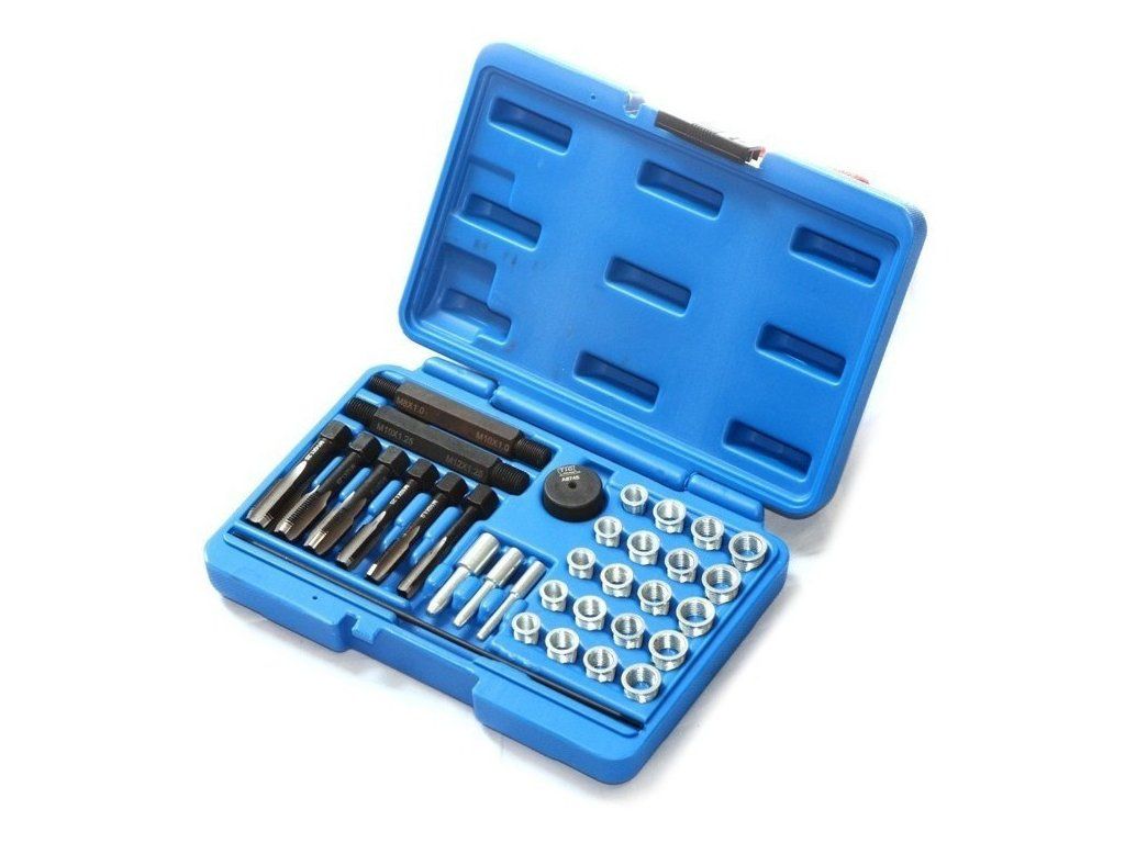 Sada na opravu závitů žhavících svíček, závitníky o rozměrech: M8x1.0, M10x1.0, M10x1.25, M12x1.0, M12x1.25 a M14x1.25.