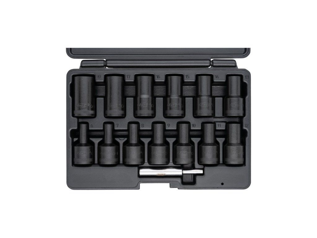 Kované nástrčné klíče na poškozené šrouby a matice, čtyřhran 1/2 palce (12,5 mm). Velikosti 6 - 19 mm, 13 kusů.